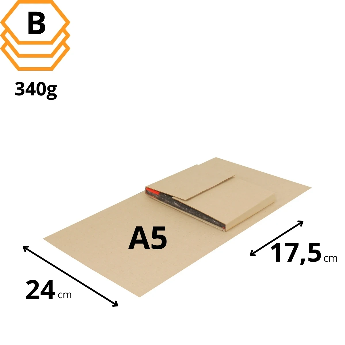 - Karton na książki A5 jest dostosowany do wysyłki artykułów papierniczych o tym formacie, takich jak notesy, zeszyty, bruliony.