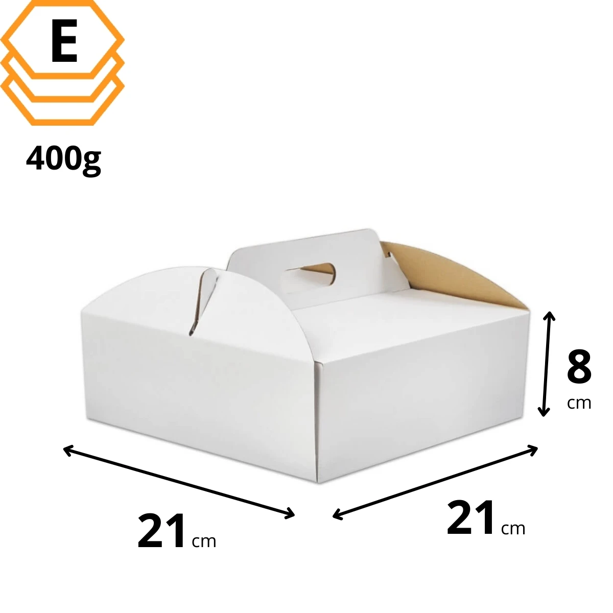 Karton na tort 210x210x80 mm kolor biały z rączką - bardzo mocny 10 szt.