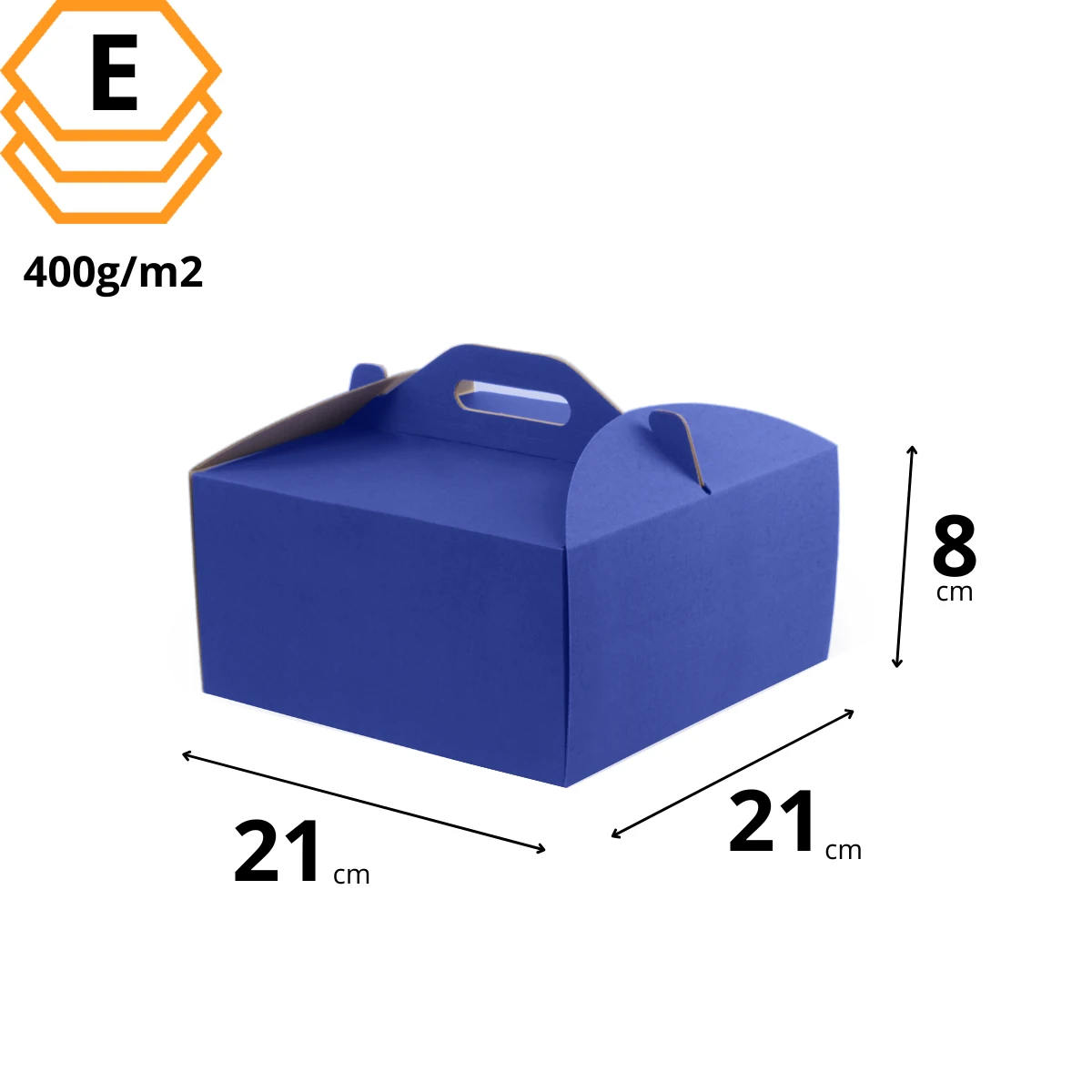 Karton na tort z rączką 21x21x8 cm niebieski - 400 szt. Dane techniczne