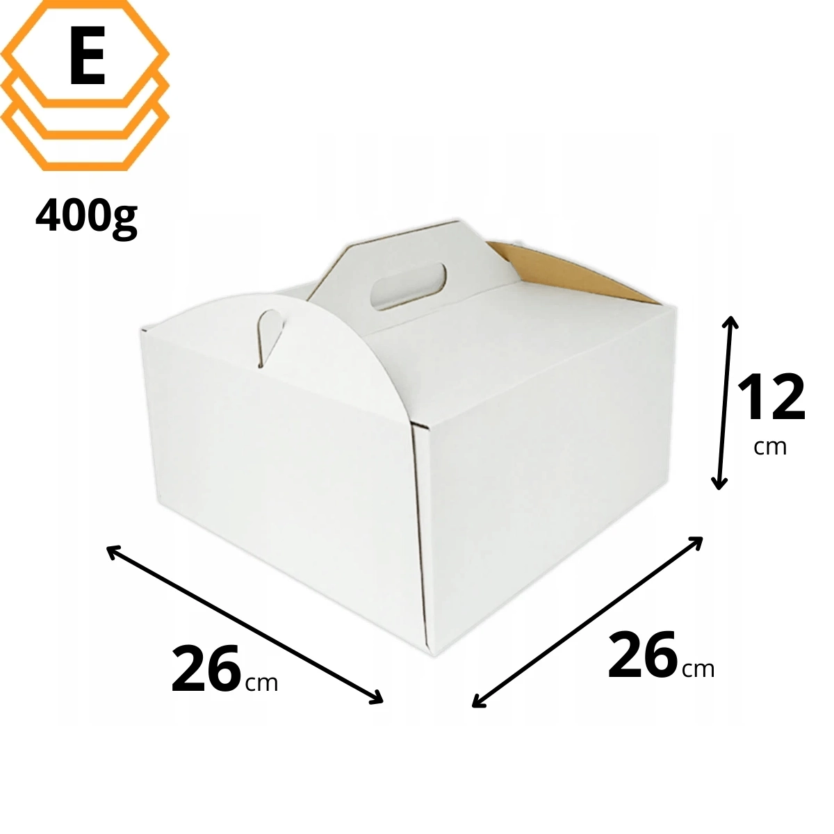 - Kartonik na tort 260x260x120 mm jest dostosowany do przechowywania i transportu żywności.