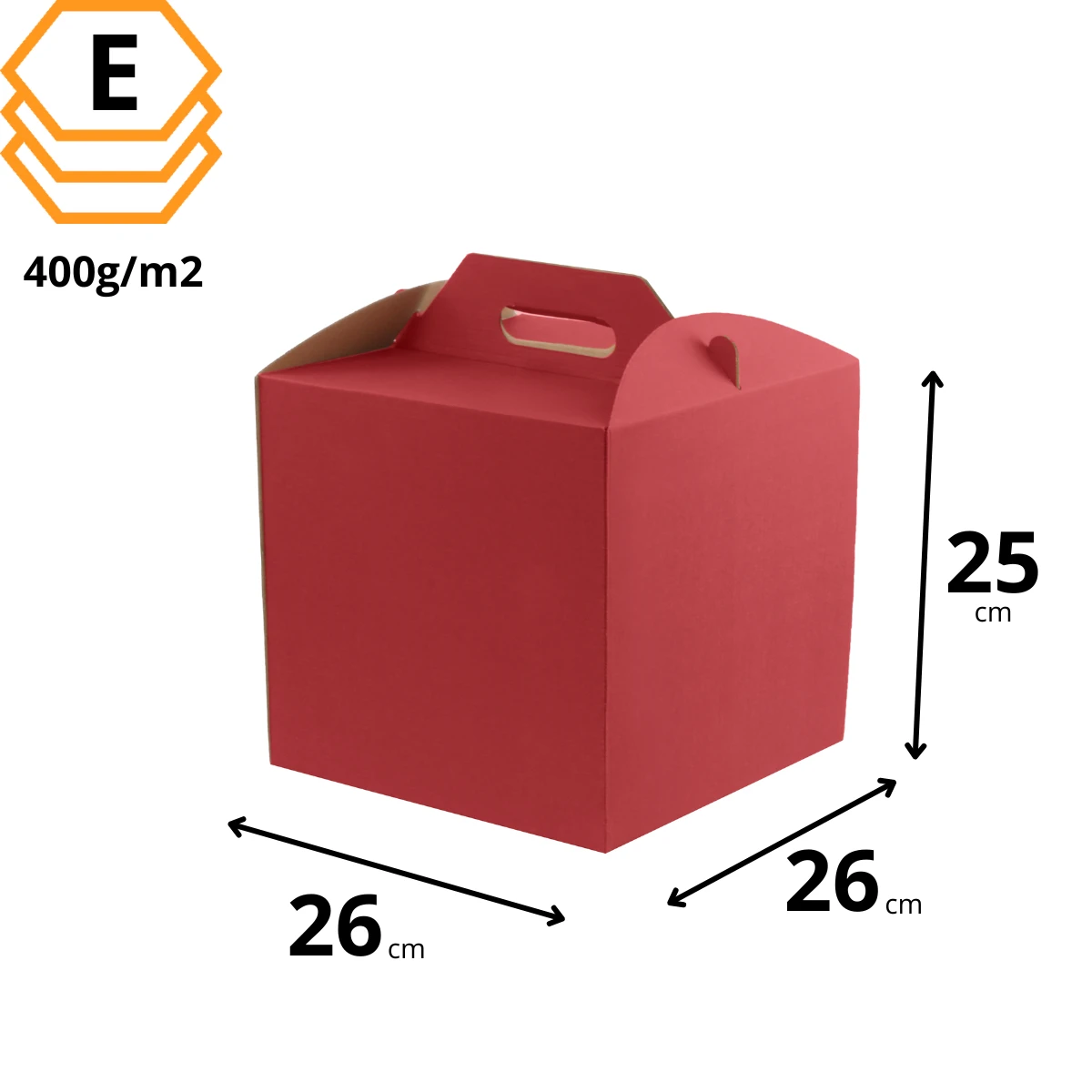 Karton na tort z rączką 26x26x25 cm czerwony - 5000 sztuk
