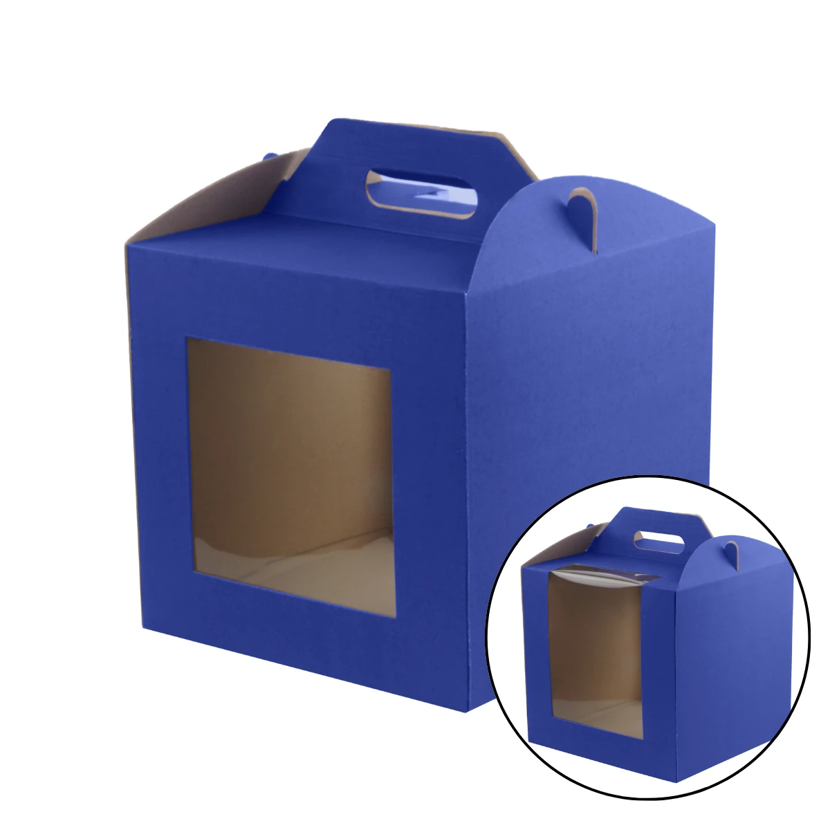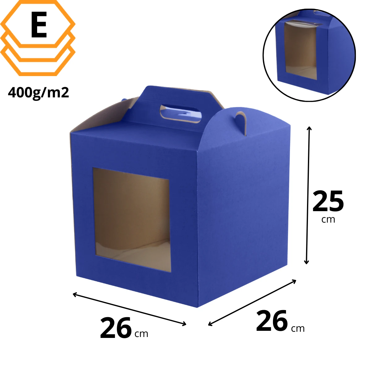 Karton na tort z rączką 26x26x25 cm niebieski z małym i dużym okienkiem - 200 szt.